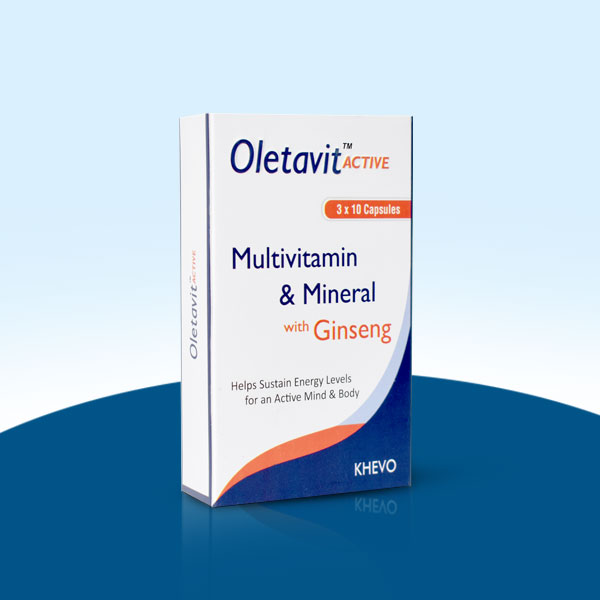Oletavit™ ACTIVE is a powerful blend of ginseng, essential vitamins, and vital minerals to support overall vitality. Its unique formulation helps fight fatigue, boost stamina, and enhance energy levels, keeping the mind and body active throughout the day. The natural benefits of ginseng (an adaptogen) improve endurance and mental focus, while the rich blend of multivitamins and minerals strengthens the immune system, supports bone health, boosts quality of life, and promotes healthy skin and hair.